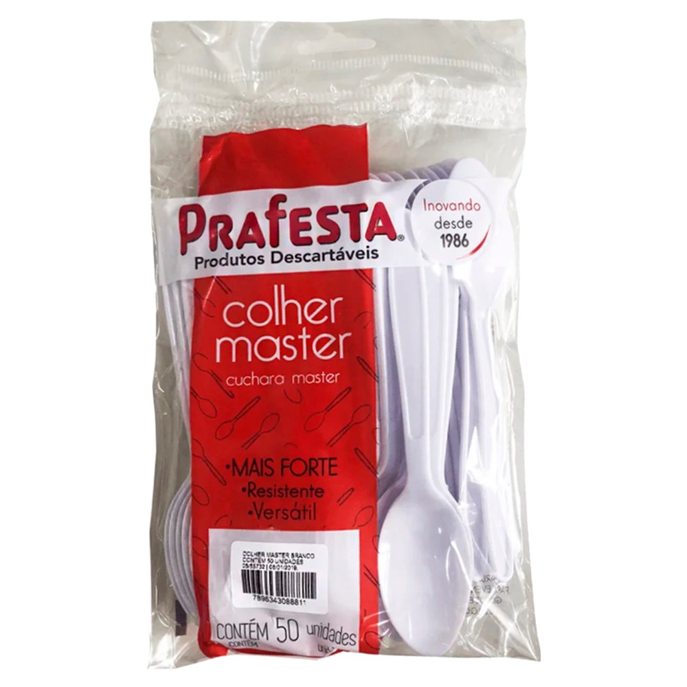 COLHER DESCARTÁVEL PRAFESTA MASTER BRANCA 500UN