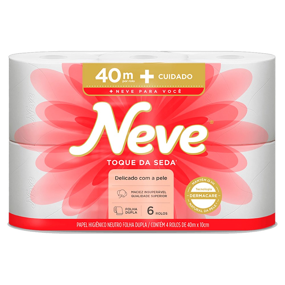 PAPEL HIGIÊNICO NEVE TOQUE DE SEDA FOLHA DUPLA NEUTRO 40M 6 ROLOS