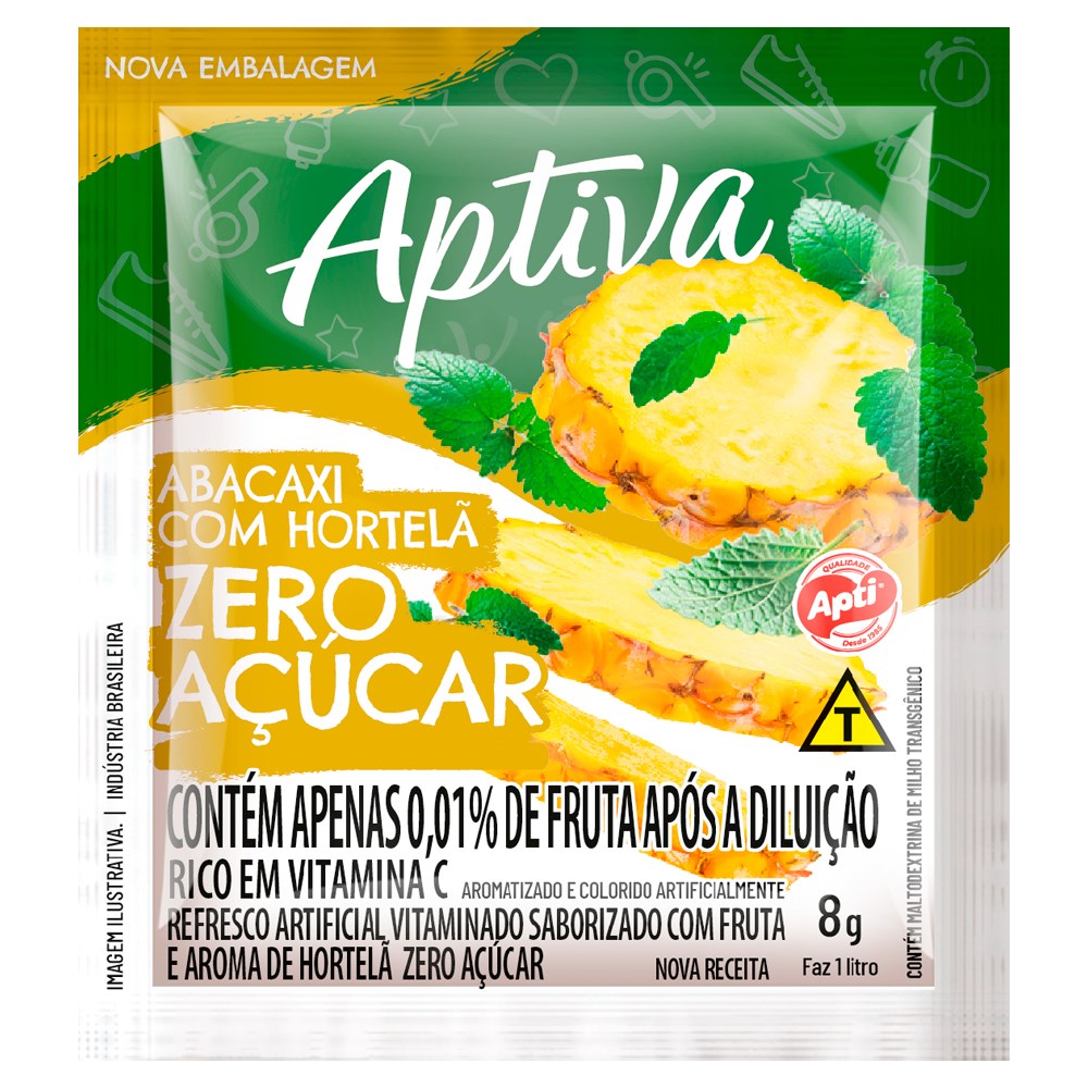 REFRESCO EM PÓ APTI ZERO AÇÚCAR ABACAXI COM HORTELÃ 8G